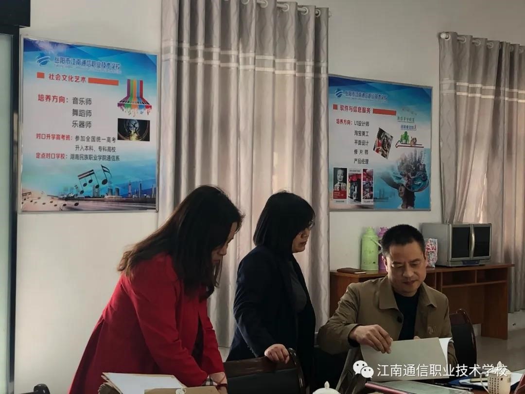3月22日上午,岳陽市教體局領(lǐng)導(dǎo)李像謙科長一行蒞臨我校進(jìn)行2021年春季教學(xué)視導(dǎo)工作。視導(dǎo)組成員就常規(guī)教育教學(xué)工作專業(yè)辦學(xué)條件,專業(yè)教學(xué)文件,專業(yè)教學(xué)團(tuán)隊(duì)、實(shí)習(xí)與就業(yè)情況、專業(yè)建設(shè)實(shí)效等六個(gè)方面全面進(jìn)行了檢查視導(dǎo)。 肯定我們工作做的細(xì)致、扎實(shí),有實(shí)效,專業(yè)有特色,學(xué)生有所成。同時(shí)交待了下階段要做好的六件事: